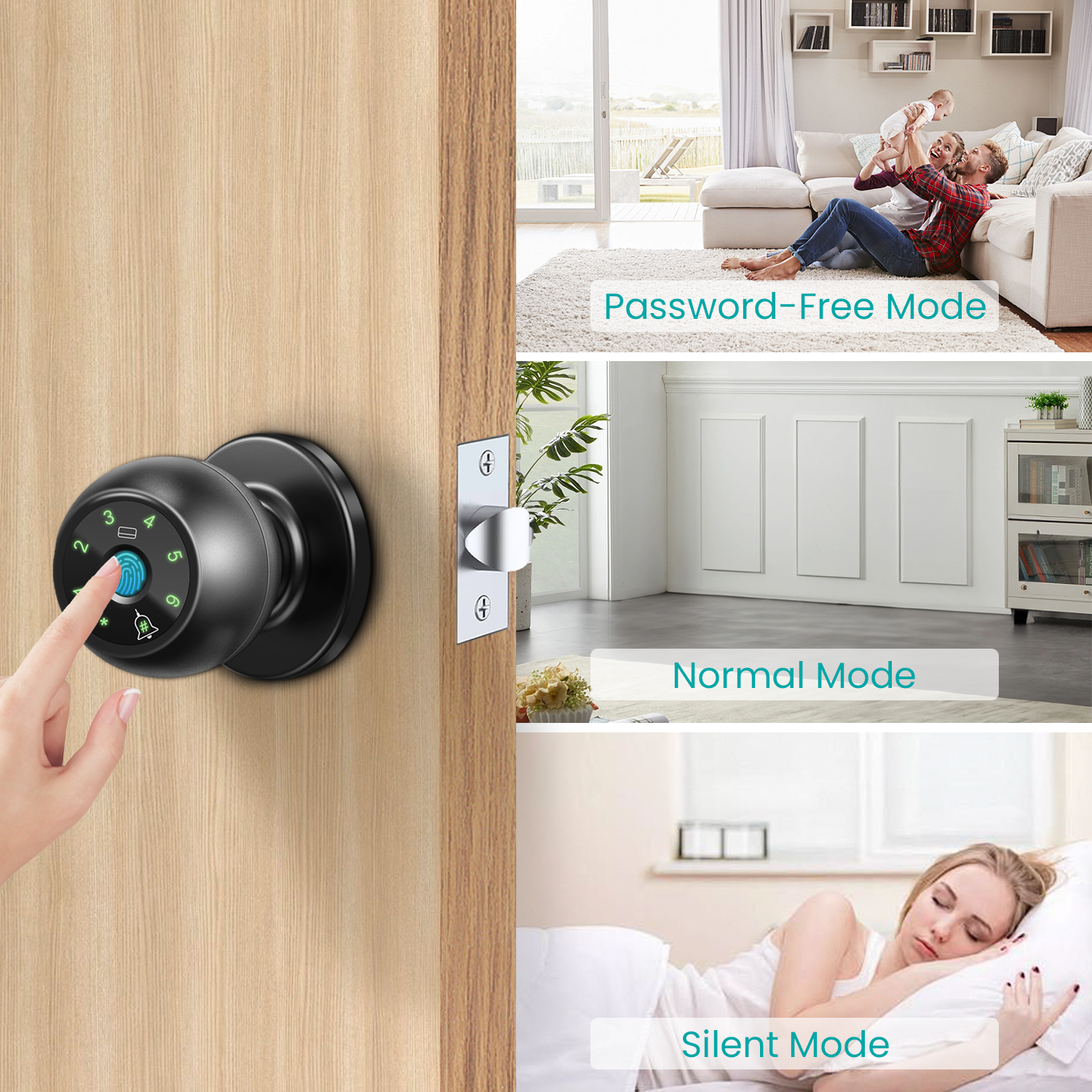 3 smart modes: Normal Mode, Passage Mode (keeps the door unlocked), and Silent Mode.