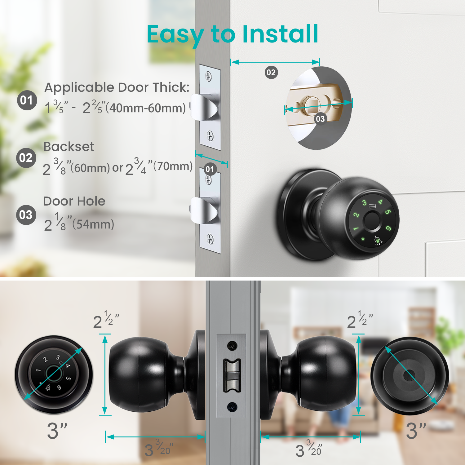 Smart Fingerprint Door Knob, Keyless Thumbprint Entry Door Lock